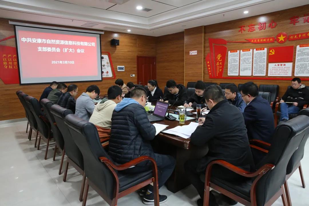 為傳達學習、深入貫徹全市國資系統2021年工作落實會議、市工信局(國資委)系統黨建暨紀檢監察會議精神,3月10日,市自然資源信息科技有限公司召開支部委員會(擴大)會議,就全面領會精神實質、把握核心要義、強化貫徹落實作出安排部署,提出具體要求。公司黨支部書記、董事長劉洪波、總經理黃光俊出席會議,公司全體黨員及中層管理人員參加會議。會議傳達學習了市國資委黨委書記、主任許啟政在全市國資系統2021年工作落實會議上的講話、市紀委監委派駐市發改委紀檢組組長陳金嵐題為《以紀檢監察工作高質量保障“十四五”開好局、起好步》的講話精神。